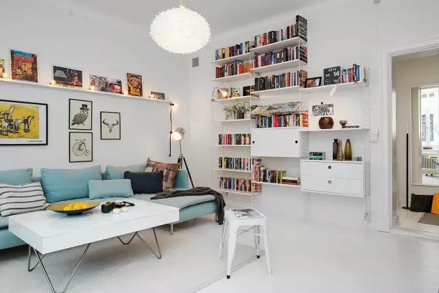 客厅的墙面都被粉刷成白色,和白色的地板相呼应,浅蓝色布艺沙发点缀这个洁白无瑕的空间,使客厅有了不一样的表情。(来源:装个好房子)