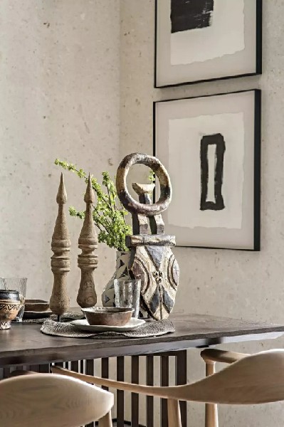 本案以浅色木饰面为基调,搭配墙面富有自然肌理感的石材,干净而通透的玻璃屏风,联结不同维度的江景,增加空间通透度和仪式感,意在有限的空间中打造舒适、宁静,并富有禅意感的生活方式。(来源:设计邦)