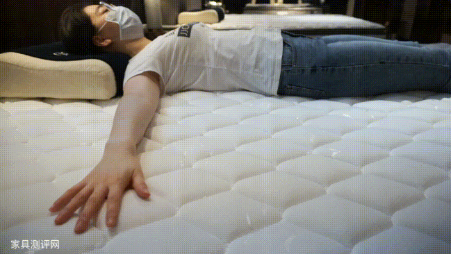 落座时弹动幅度很小,无阻滞感。意味着床垫有不错的减震性,能带来安稳流畅的高级硬体感。