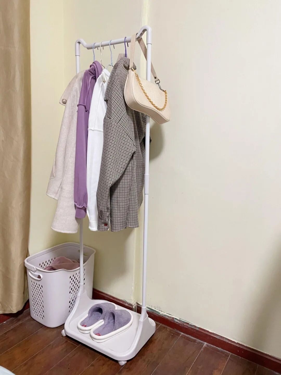 没想到买回来后还挺惊喜的,每天换下来的衣服直接挂上去,裤装、睡衣之类的就叠在下面的收纳篮里,卧室看着都清爽了许多。